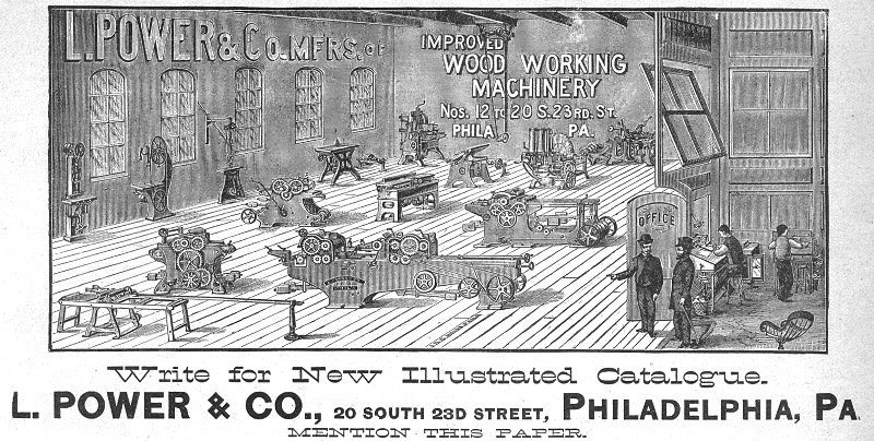 My personal favorite….this is a museum quality example of a L.Power table saw from c.1910. Located on 23rd st in Philadelphia, L. Power made a whole line of woodworking equipment starting around 1867.