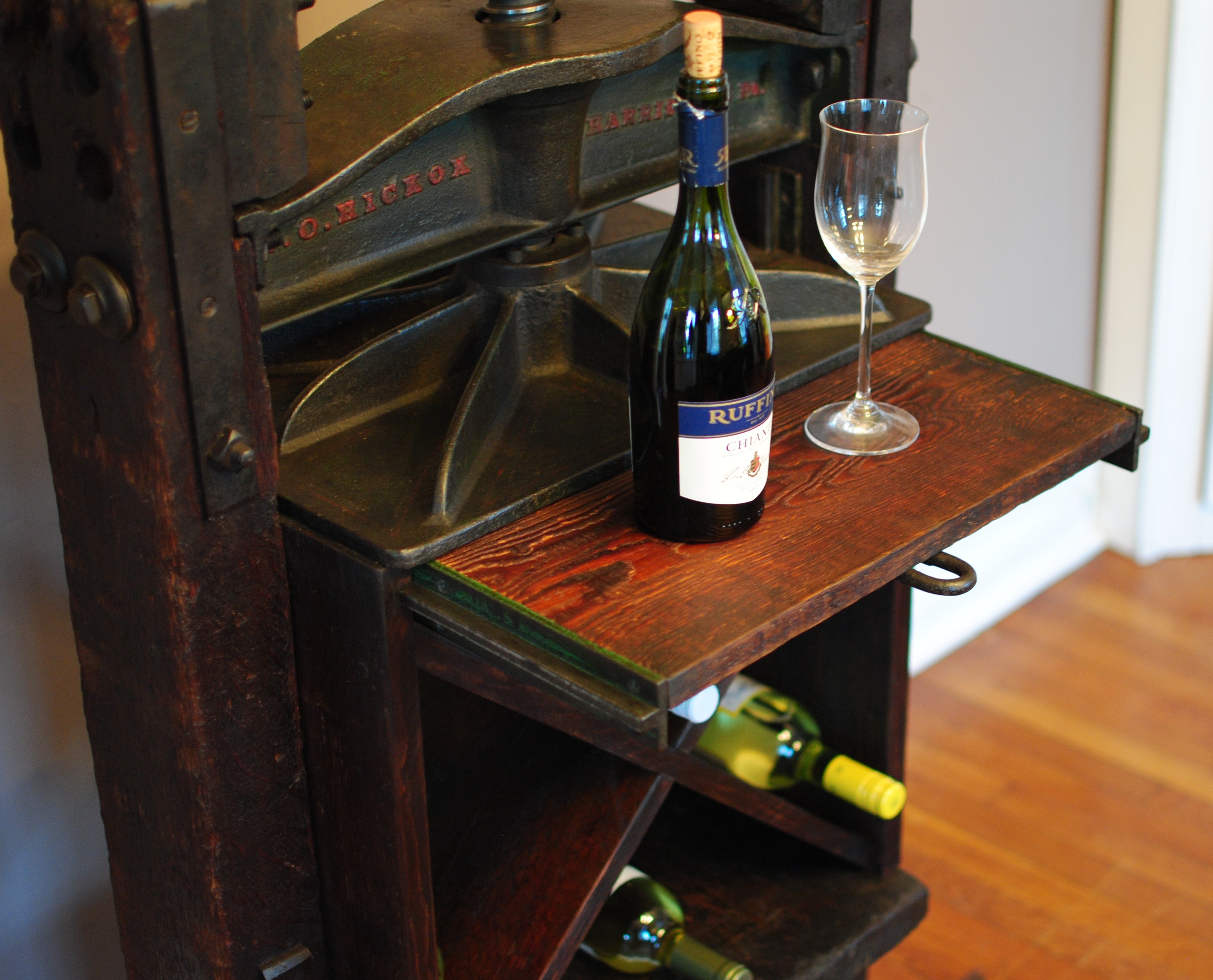 An 1860’s Book Press repurposed into wine/bar storage and display.